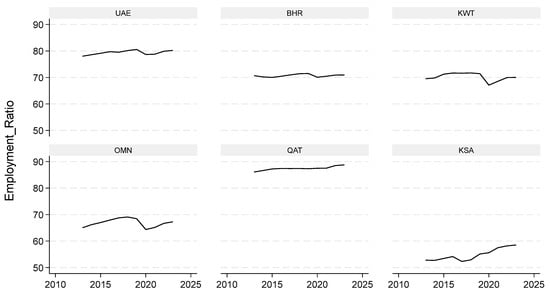 Adam, N.A.; Alzuman, A. Effect of per Capita Income, GDP Growth, FDI, Sectoral Composition, and Domestic Credit on Employment Patterns in GCC Countries: GMM and OLS Approaches. Economies 2024, 12, 315. https://doi.org/10.3390/economies12110315