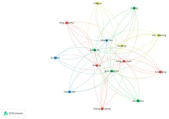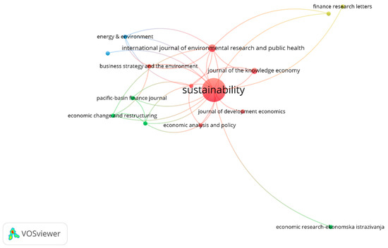 The red cluster prominently featured the journal Sustainability, highlighting its strong connection with the Journal of Cleaner Production as the leading publication in the blue cluster. Notably, Sustainability not only occupied a distinct cluster but also formed connections with all other clusters, demonstrating its pervasive influence within the field.