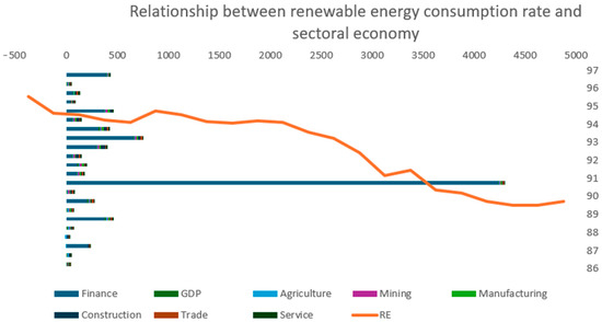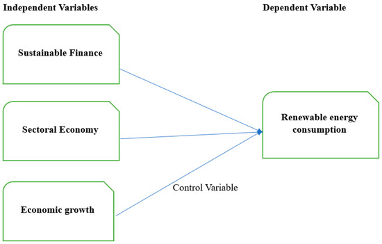 The industries used in this study as part of the sectoral economy are manufacturing, agriculture, construction, hunting, forestry, transportation, fishing, mining, utilities, wholesale and retail commerce, dining establishments, lodging, storage and communication. All economic sectors are measured by their value added to the economy as a proportion of the GDP. Additionally, the target variable of this study, sustainable finance, is measured by the annual international financial flows funded for supporting clean energy research and development. The dependent variable of this study, renewable energy consumption share, is calculated as the quantity of renewable energy utilized in the total energy supply for each year. Apart from the sectoral economic contribution, the research includes aggregate data on economic growth as a control variable. Based on this information, this study examines the relationship between each variable.
