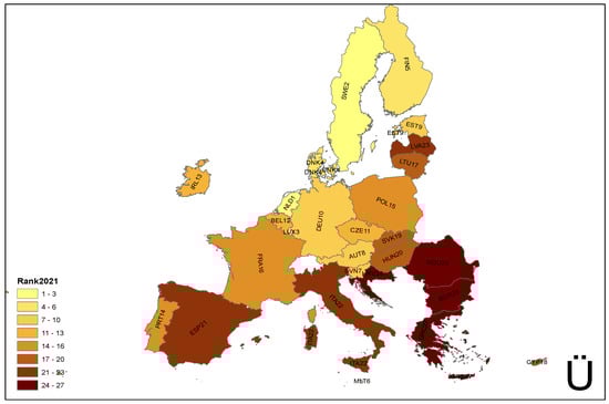Ranking of quality of life in EU countries for 2021. Source: Authors’ calculations.