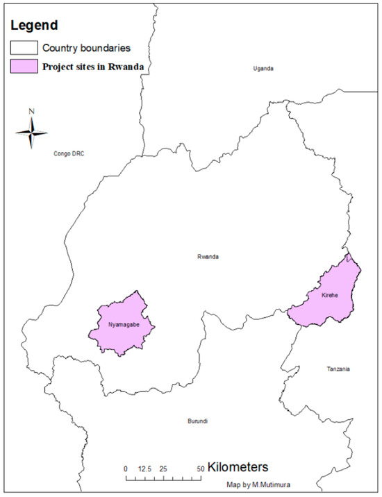 Map of Rwanda with the two selected case studies.