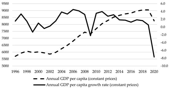 As can be seen in Figure 1, from 1996 to 2020, Latin America experienced various stages of economic growth. In the late 1990s, the region suffered economic turbulence due to the Asian financial crisis that affected several Latin American countries, especially those with more vulnerable economies dependent on external capital flows.