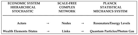 Schematic of the mapping of the economic system into a scale-free complex network and its modeling as a Planck photon gas physical system.