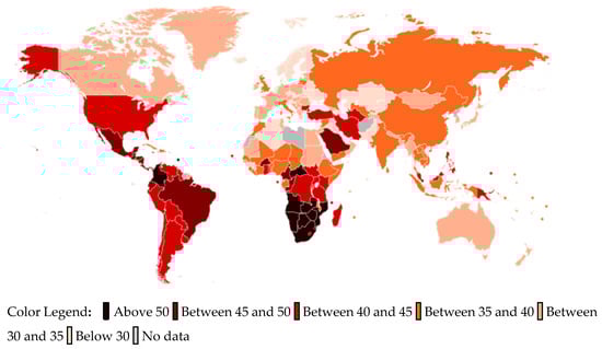 - World Bank Group. 2022. Gini Index, World Bank Open Data—All Countries and Economies, Data Ranging mostly from 2015 to 2022, Washington DC. Available online: https://data.worldbank.org/indicator/SI.POV.GINI?most_recent_value_desc=false (accessed on 15 August 2024).