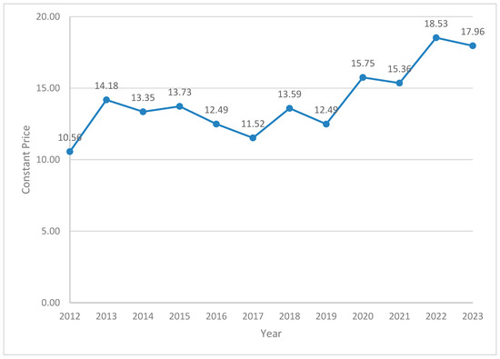 Average real price of a 30-egg tray (local eggs) in SAR (2012–2022). Source: Authors’ calculation based on GASTAT data.
