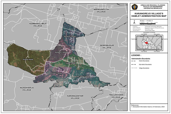 Karangrejo Village is located in Borobudur District, Magelang Regency, Central Java (Figure 2), covering 174 km2 and hosting approximately 2800 residents (Karangrejo Village Profile, 2023). Situated at an altitude of 200–300 m above sea level, its topography ranges from lowlands to hills, fostering fertile agricultural land near the slopes of Mount Merbabu and Mount Merapi. These natural conditions support agriculture as the main economic activity, with rice, secondary crops, and horticultural produce thriving.