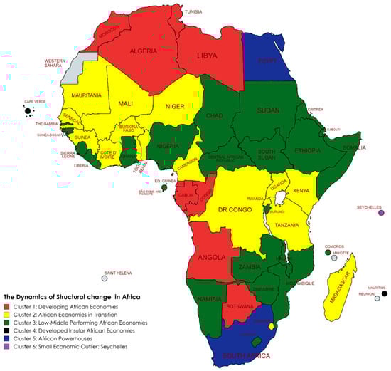 Figure 1 underscores the multidimensional nature of structural transformation in Africa, where clusters display distinct strengths and weaknesses across key components. The clusters have been named based on their unique characteristics, providing deeper insights into the developmental pathways and challenges facing African economies.