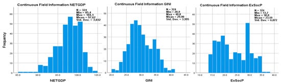 | Indicators | ExSocP | GINI | NETGDP | RDGDP | TXSwoSC | UNE |