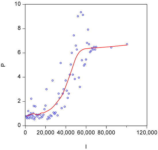 Illustration of the “S-curve” relationship between GDP per capita (I) and life insurance penetration (P).