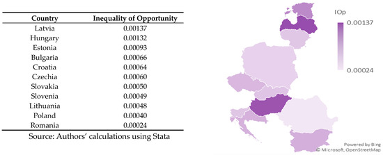 The decomposition of inequality of opportunity by country, based on the Oaxaca method, allowed the ranking of the analysed states and highlighted major differences between Central and Eastern European countries regarding inequality of opportunity in income, as shown in Figure 1.