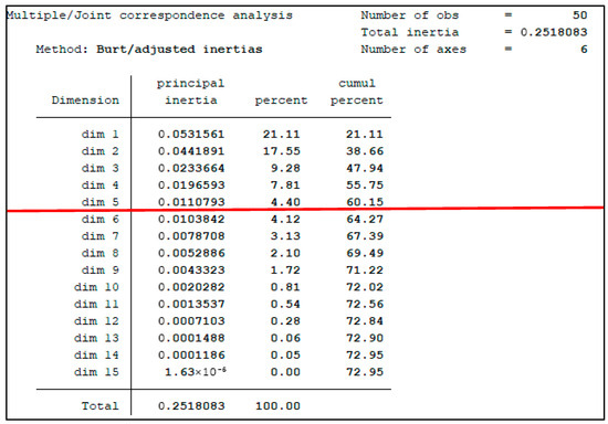 Results of the MCA (STATA print screen).