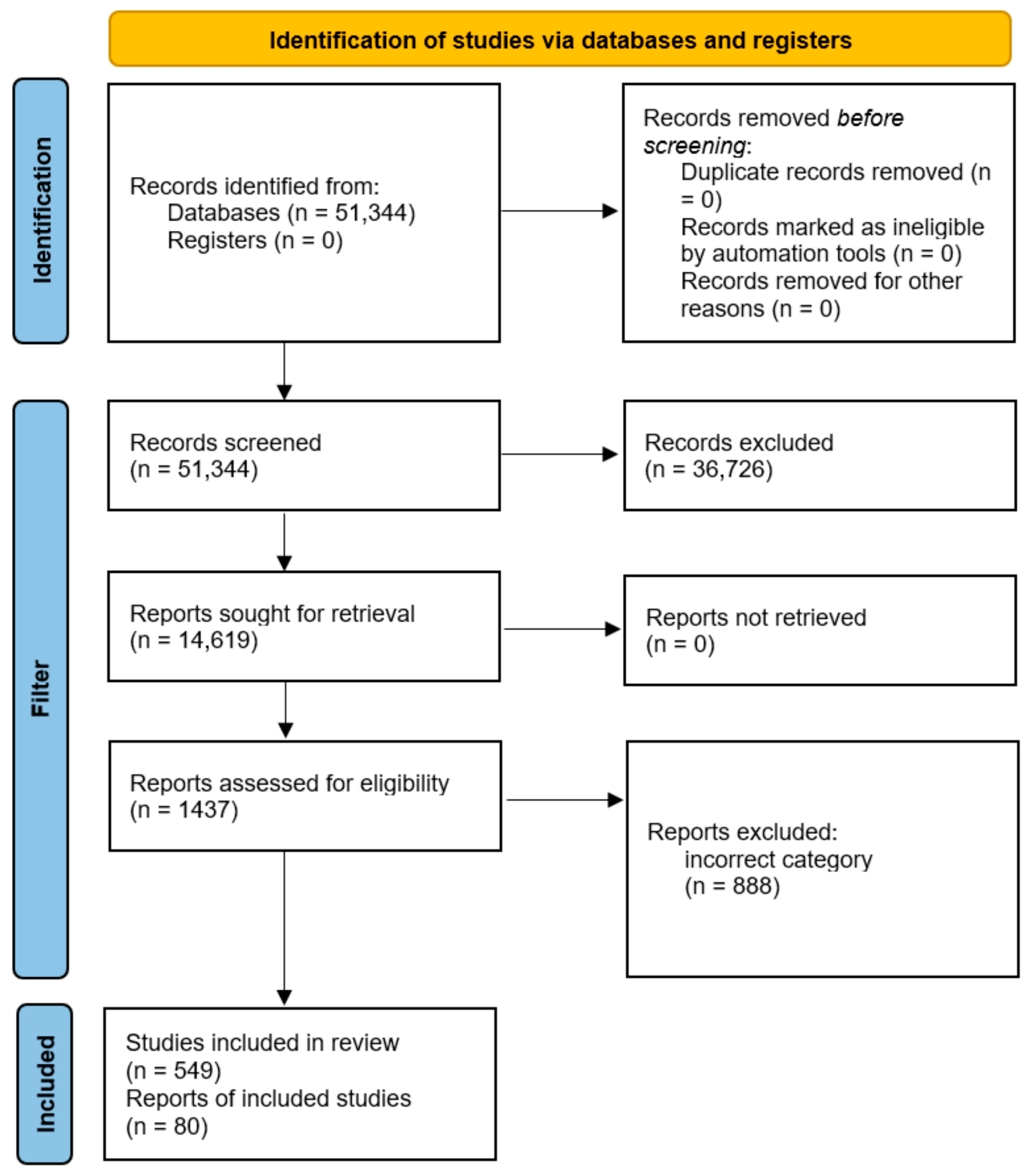 After the screening and eligibility assessments, 549 scientific publications remained that fully met the predefined inclusion criteria and were available in full text for analysis.