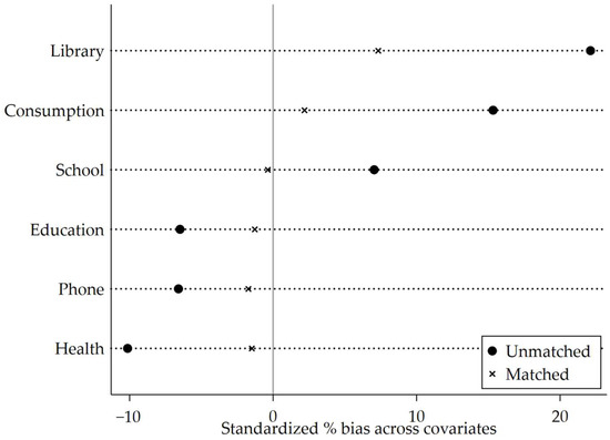 where denotes household income of household i in year t; is the policy dummy, capturing whether household i was affected by the extension program in year; is the parameter of interest, representing the average treatment effect of the policy; is a set of control variables; , and are household, year, and regional fixed effects, respectively; and is the error term.