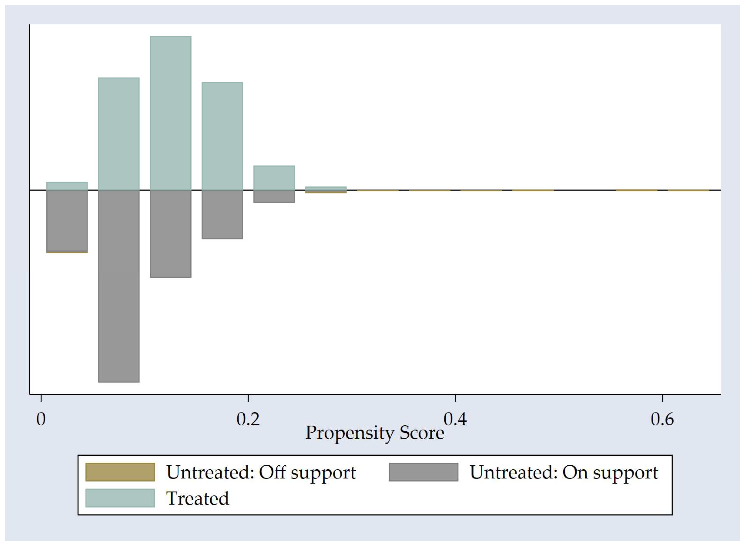 - Mechanism Variables: Two regional-level proxies are introduced to see if the policy affects household income by expanding production: land transfer rate (Land) and production input costs (Cost). The ratio of transferred contracted farmland to total cultivated land measures the land transfer rate. This shows how much households are expanding their operational scale. To find the production input costs, we add up the money that households in each region spend on seeds, pesticides, and fertilizers and then take the logarithm. This gives us an idea of how much capital is needed for each unit of output and, indirectly, how efficient production is. To further investigate whether the policy enhances income via quality improvement, two additional regional-level variables are incorporated: the quantity of organic food certifications (Organic), indicative of the growth in high-quality agricultural product supply, and the net increase in agricultural processing enterprises (Process), which signifies the advancement of processing activities and the elongation of the agricultural value chain. To make sure that regression coefficients are always scaled the same way, the number of organic certifications is standardized. The net increase in agricultural processing businesses is the difference between the number of new businesses and the number of businesses that close, expressed in logarithmic form (the absolute value is taken before the log transformation if it is negative). This shows how dynamic and growing processing activities are.