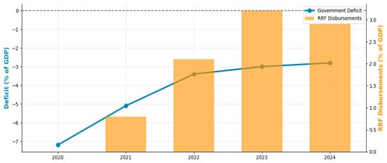| Difference-in-differences analysis | Effect of the Recovery and Resilience Mechanism | 0.8–1.2% | Improvement of the deficit |