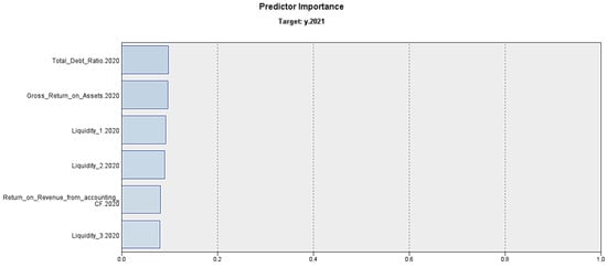 In this case, the Total Debt Ratio and Gross Return on Assets share first place, with an importance of 0.10, followed by Liquidity 1 and Liquidity 2, with an importance of 0.09. The third place belongs to the Return on Revenue from Accounting Cash Flow and Liquidity 3, with the importance of 0.08.