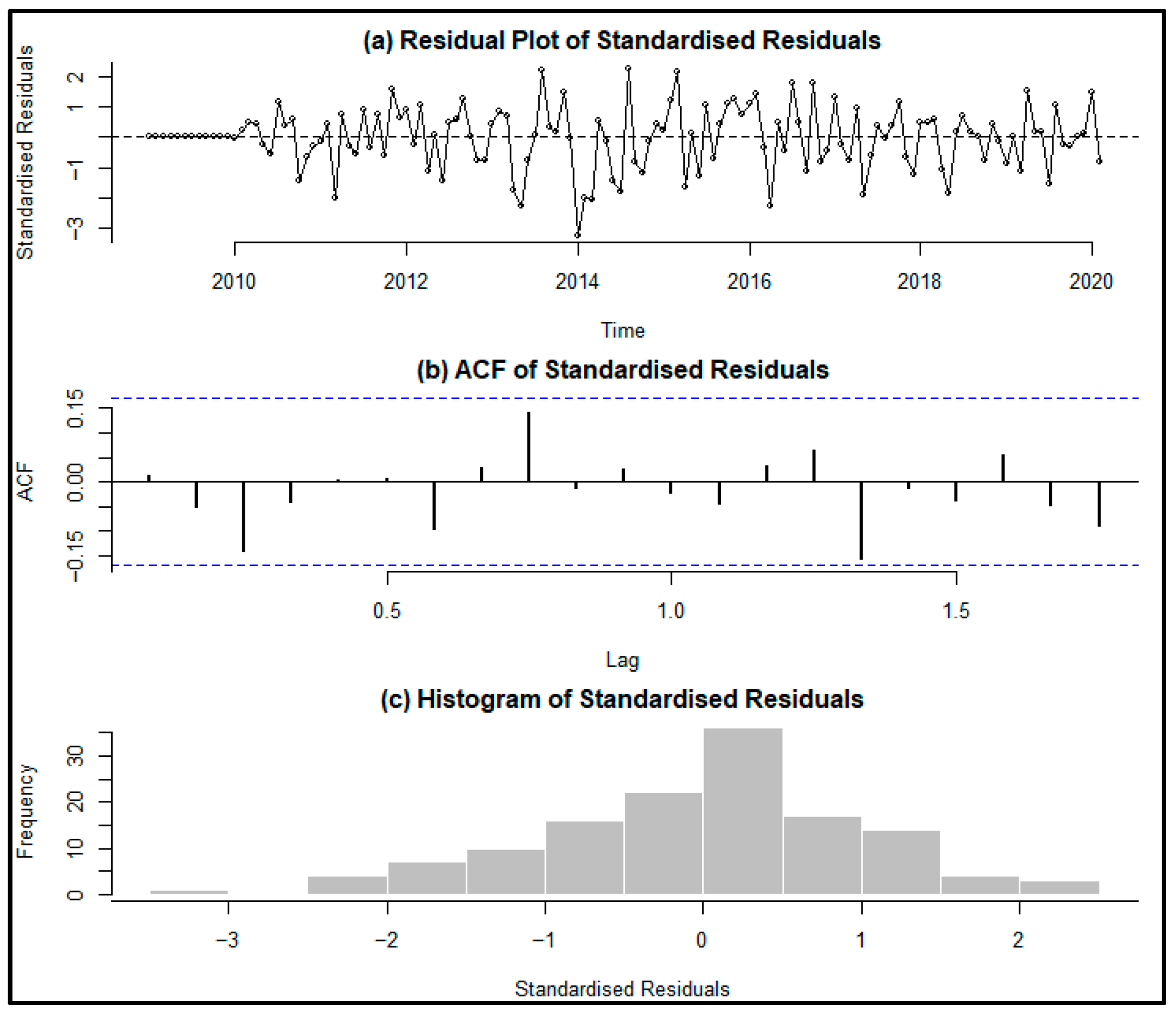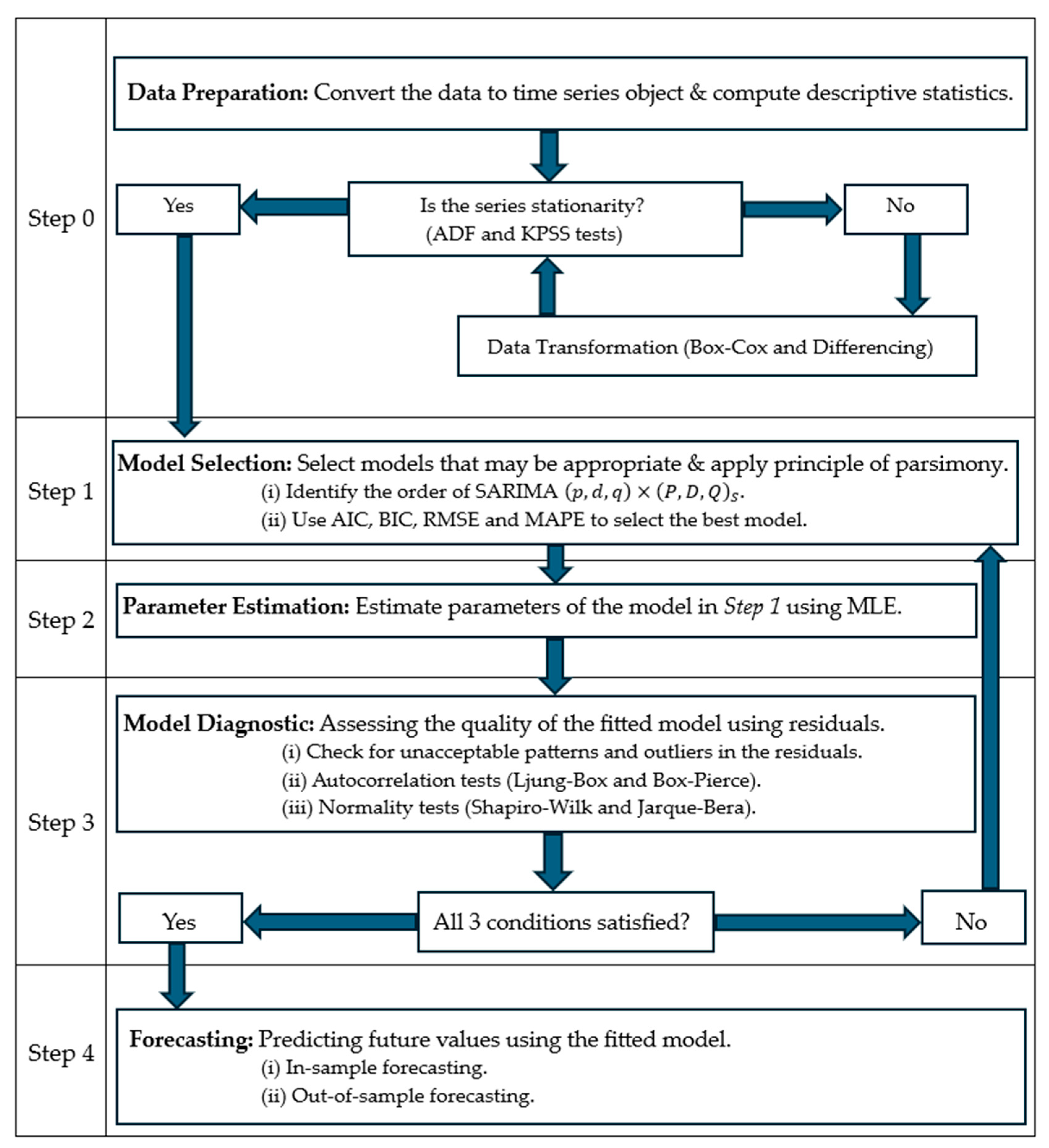 - Hyndman, R. J., & Khandakar, Y. (2008). Automatic time series forecasting: The forecast package for R. Journal of Statistical Software, 27, 1–22. [Google Scholar] [CrossRef]