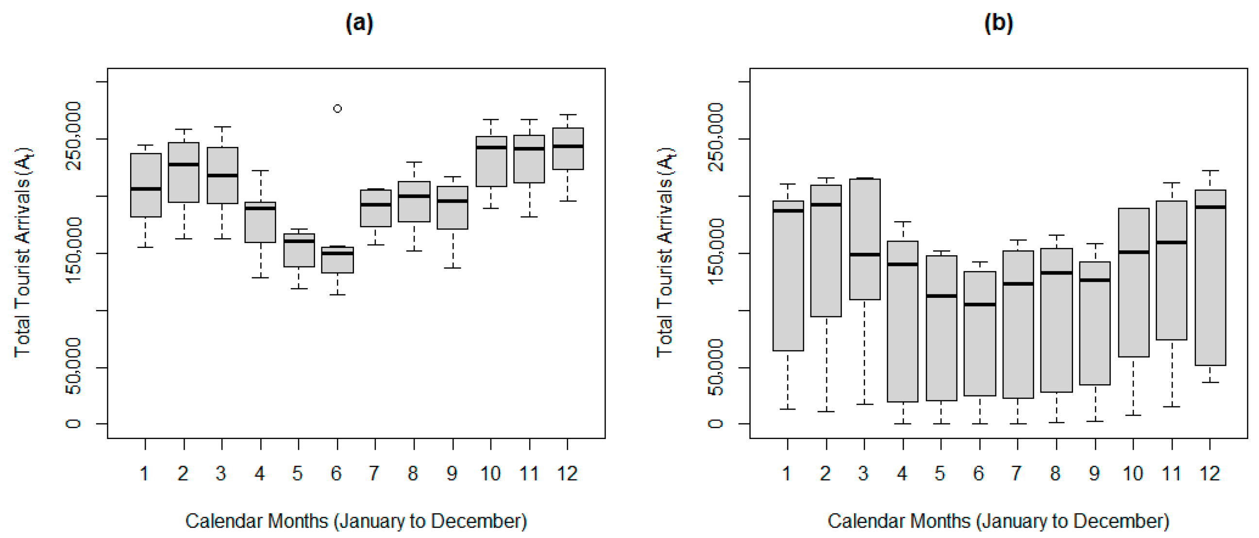 - Chipumuro, M., Chikobvu, D., & Makoni, T. (2024b). Statistical analysis of overseas tourist arrivals to South Africa in assessing the impact of COVID-19 on sustainable development. Sustainability, 16, 5756. [Google Scholar] [CrossRef]