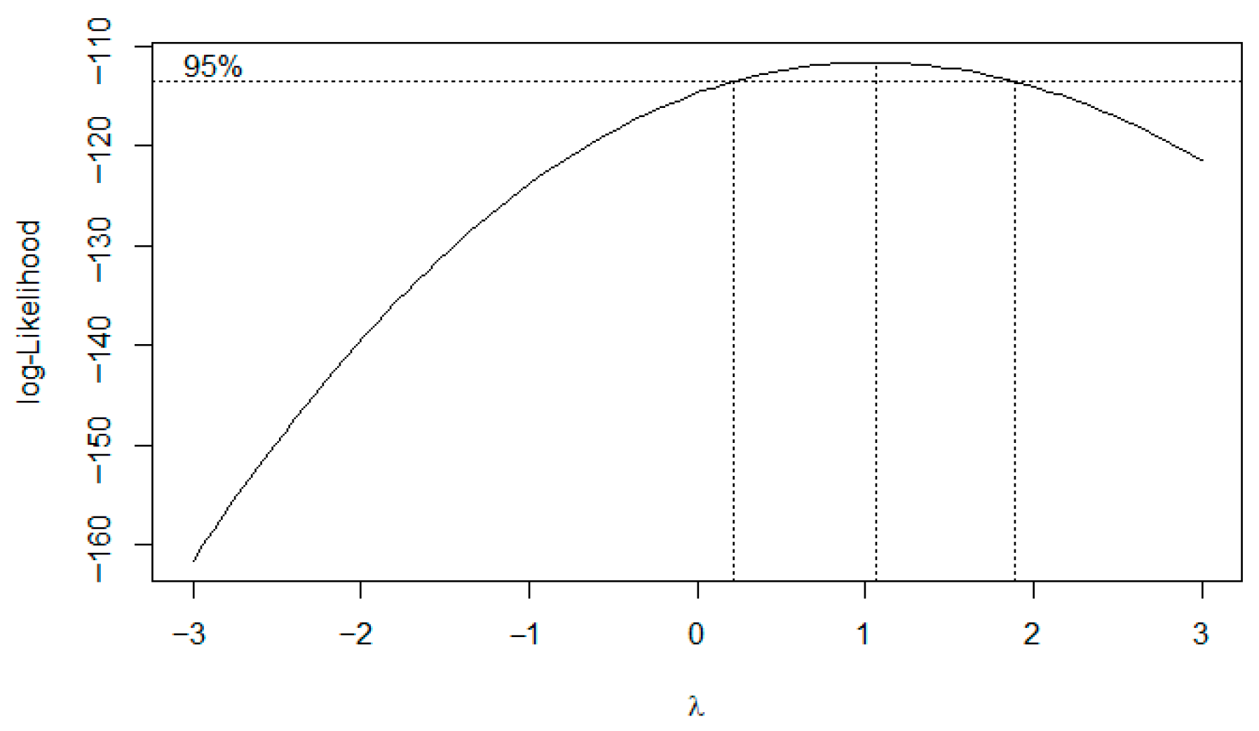 - Proietti, T., & Lütkepohl, H. (2013). Does the Box–Cox transformation help in forecasting macroeconomic time series? International Journal of Forecasting, 29(1), 88–99. [Google Scholar] [CrossRef]