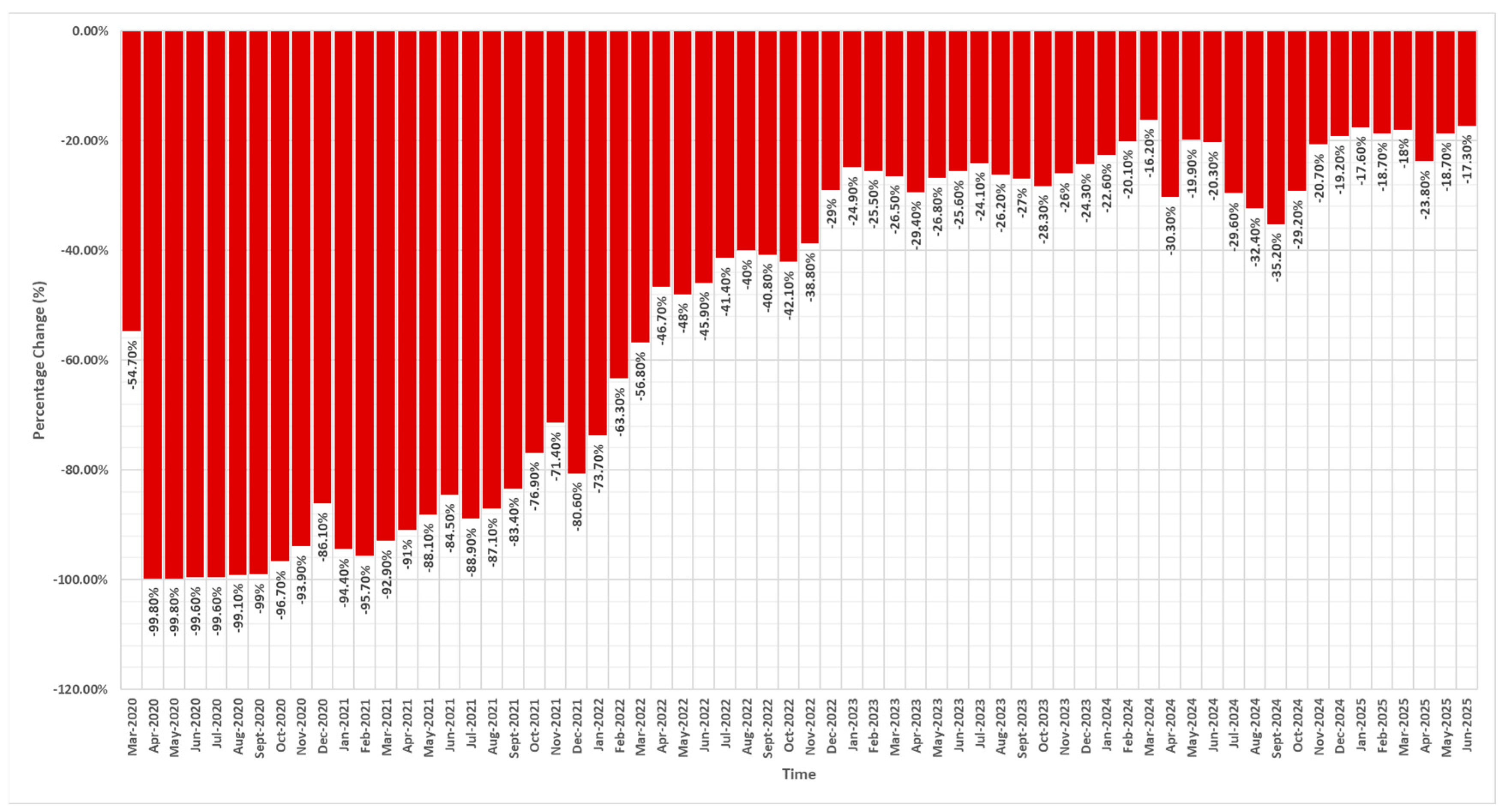 | Jun-2025 | 171,884 | 142,068 | −29,816 | −17.30% | −0.5 | 139,984 | −31,900 | −18.60% |