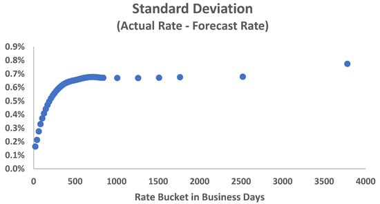 The model’s outperformance at vertices between 168 and 399 days is particularly significant because these maturities represent the most actively traded segments of the Brazilian interest rate futures market. The strongest predictive power occurs at 252 and 294 days (with p-values of 1.22% and 2.59%, respectively), which precisely aligns with typical investment horizons in the Brazilian fixed income market. Moreover, these vertices correspond to the most liquid segments of the Brazilian interest rate futures market, where price discovery is most efficient. The model’s effectiveness in these segments is particularly valuable as they represent maturities where most market activity occurs, making the predictions practically applicable for market participants.