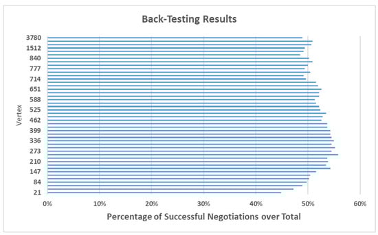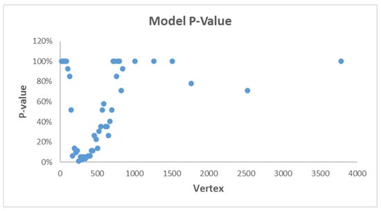 Table 6 contains a summary of the vertices at which the model beats the tossing of a coin for a p-value with a limit of 10%.