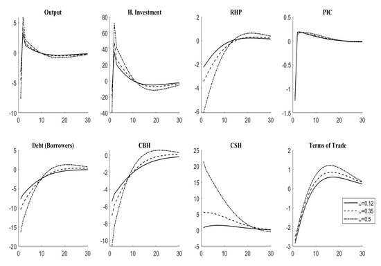 - Justiniano, A., & Preston, B. (2010). Monetary policy and uncertainty in an empirical small open-economy model. Journal of Applied Econometrics, 25(1), 93–128. [Google Scholar] [CrossRef]