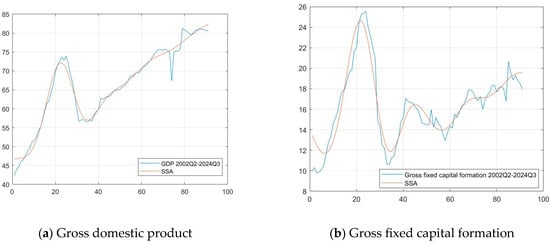 In our article, we use the basic SSA algorithm for two main purposes—empirical data preprocessing and tendency analysis. The main advantage of SSA is that it is able to analyse both low-frequency and high-frequency fluctuations in time series, unlike methods traditionally used in economic disciplines, such as the Hodrick–Prescott filter (HP filter) (Bógalo et al., 2024).