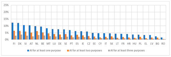 The adoption of AI is a complex process and its integration across EU countries faces several challenges. Overcoming these challenges is very important for the successful adoption and deployment of AI technologies. One primary obstacle is the considerable investment required for AI infrastructure, which includes both physical hardware and software systems. Furthermore, there is a pressing need for financial assistance to support AI research and development, alongside the establishment of educational frameworks to cultivate essential AI skills (Li, 2022; Zahidi et al., 2020). At the level of each country, this process must be implemented by enterprises and as well as the government in order to extract all the benefits for his citizens.