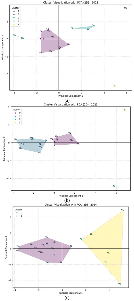 The applied importance of this study is evident in the way it provides a data-driven foundation for strategic decisions that will shape the adoption of AI at a European level. The tailored recommendations at the level of the identified clusters constitute fundamental components for a practical roadmap for policymakers, helping to improve digital transformation programs and better tailor AI regulatory policies to reality.