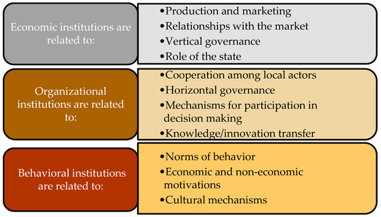 Furthermore, it is understood that the introduction and diffusion of innovations are conditioned by the characteristics of the institutions (social, cultural, and political norms and rules, and research centers, universities, and associations) of a given production system and its creative capacity. In other words, the more flexible and the higher the quality of the actors’ networks, the more effective the innovation mechanisms will be (