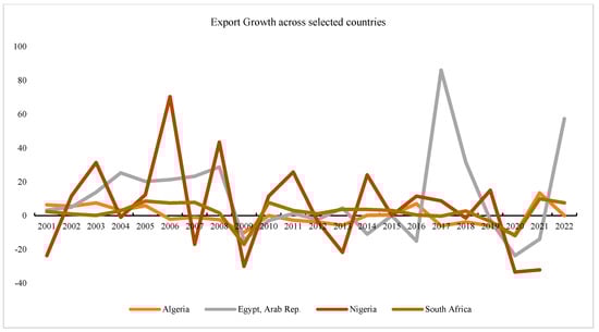 Export growth across selected economies in Africa. Source: compiled from WDI data 2022.