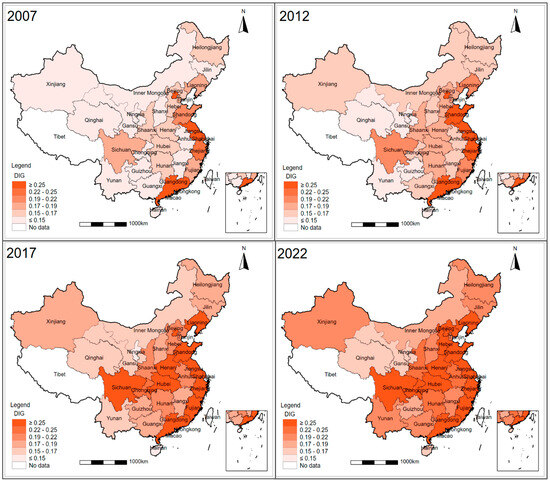 Abudureheman et al., 2023). The second approach is to construct a multidimensional comprehensive indicator system to measure the level of a digital economy. Scholars and some institutions have constructed a comprehensive index system from different dimensions for measuring the development level of a digital economy. For example, in 2017, the Organization for Economic Cooperation and Development (OECD) focused on the ICT industry and proposed a total of 38 sub-indicators from the dimensions of investment in intelligent infrastructure and innovation capacity to measure the comprehensive development level of the digital economy (