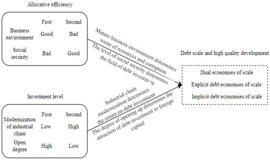 - The efficiency of resource allocation and the level of investment significantly affect the government’s explicit and implicit debt economies of scale with high-quality economic development, and both inhibit high-quality economic development.