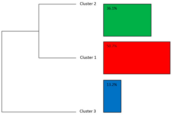 In addition to the clustering analysis, we complemented our investigation with a factorial correspondence analysis (FCA). This graphical representation further enhances our comprehension of the previous results. As depicted in Figure 4, FCA identifies the relationships between clusters, providing an insightful perspective on our clustering analysis results (Hirschfeld, 1935). It is important to interpret this chart by considering the axes in opposition (Salviati, 2017). Specifically, Cluster 1 is represented in red, Cluster 2 is in green, and Cluster 3 is in blue.