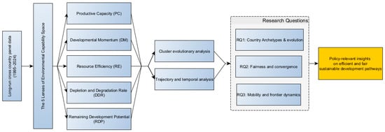 This study addresses three gaps in the literature. First, environmental sustainability progression is commonly assessed using pillar-based composites, while explicitly capability-oriented evaluations remain limited. Second, multi-indicator assessments have rarely been extended to track capability evolution over time within a consistent multidimensional state space. Third, limited evidence has been developed on how starting conditions, regional context, and structural constraints shape countries’ sustainability pathways, including their movement between archetypes, within environmental capability space. Data for 1995–2024 are used, representing the longest period for which a consistent five-lens environmental capability dataset is available with broad country coverage. This coverage supports examination of long-run trajectories and dynamics. Based on these gaps, three research questions are examined: