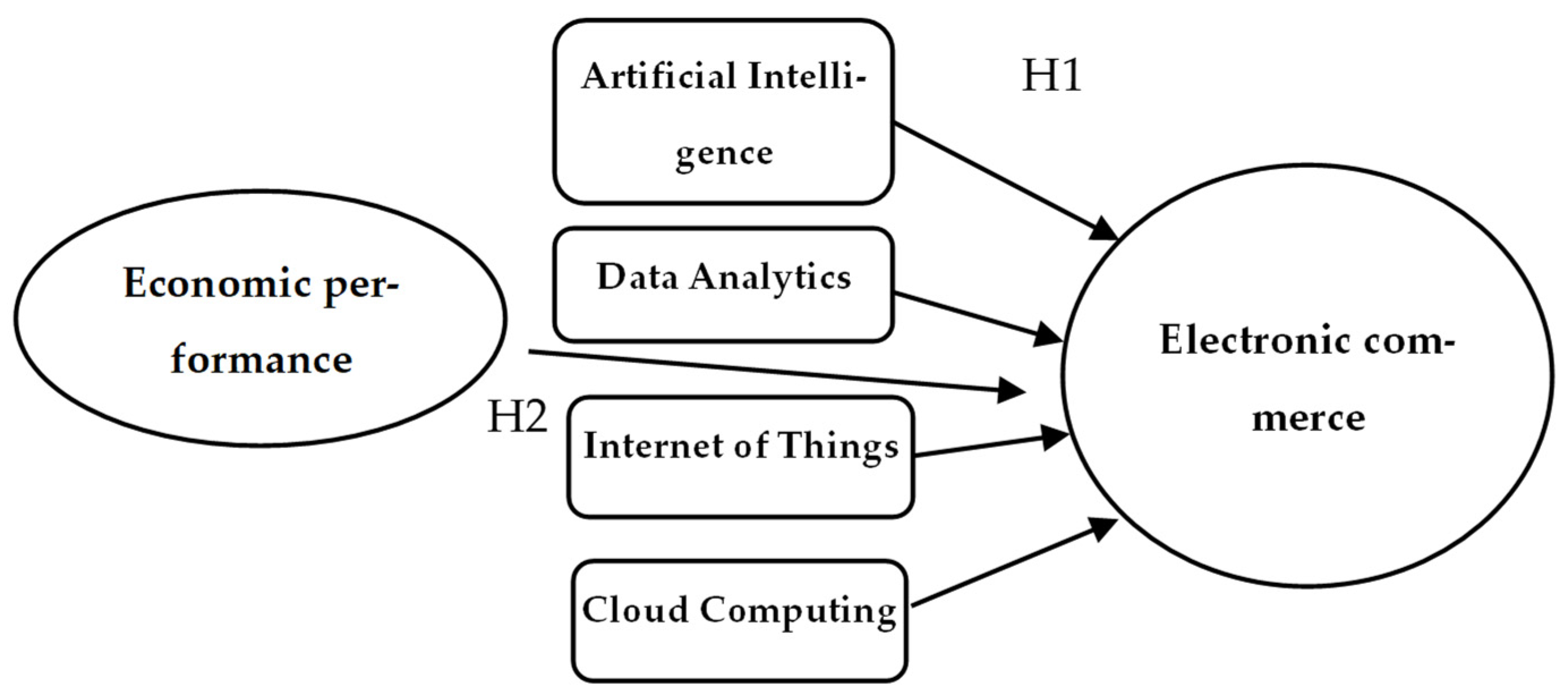 Drawing on the existing literature and identifying gaps, we formulated the study’s research question and objectives. How do artificial intelligence, big data analytics, the Internet of Things, and cloud computing collectively influence e-commerce development and sustainable economic performance (GDP) across European Union member states?