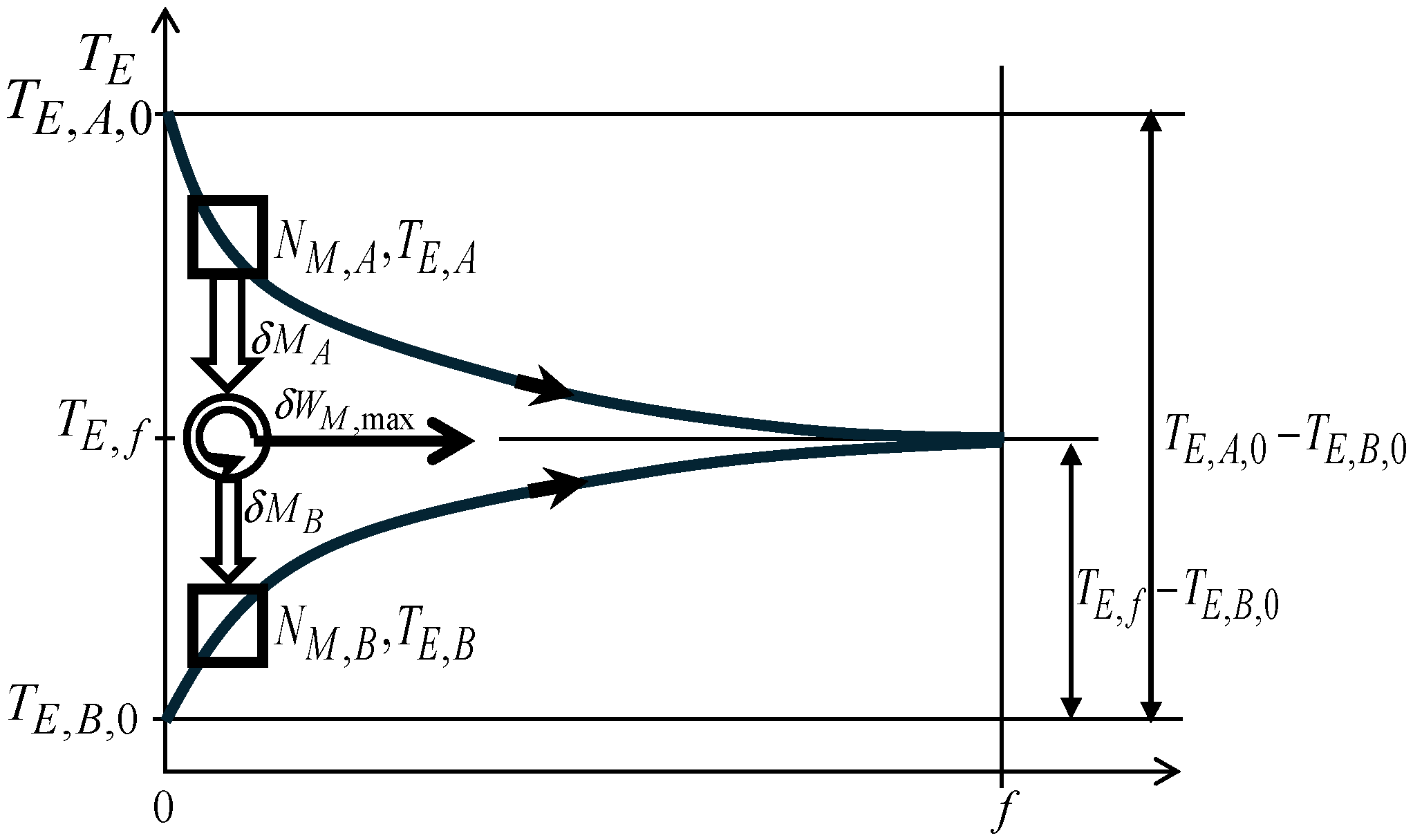 In this case, the opportunity of delivering merchandise wealth by taking advantage of the (initial) economic temperature difference [U/€] is used at the maximum, as the maximum merchandise wealth delivered corresponds to the reversible process experienced by the economic system when in economic contact with the merchandise environment at the economic temperature [U/€], up to reach the final equilibrium with that environment, no matter if [U/€] or if [U/€].