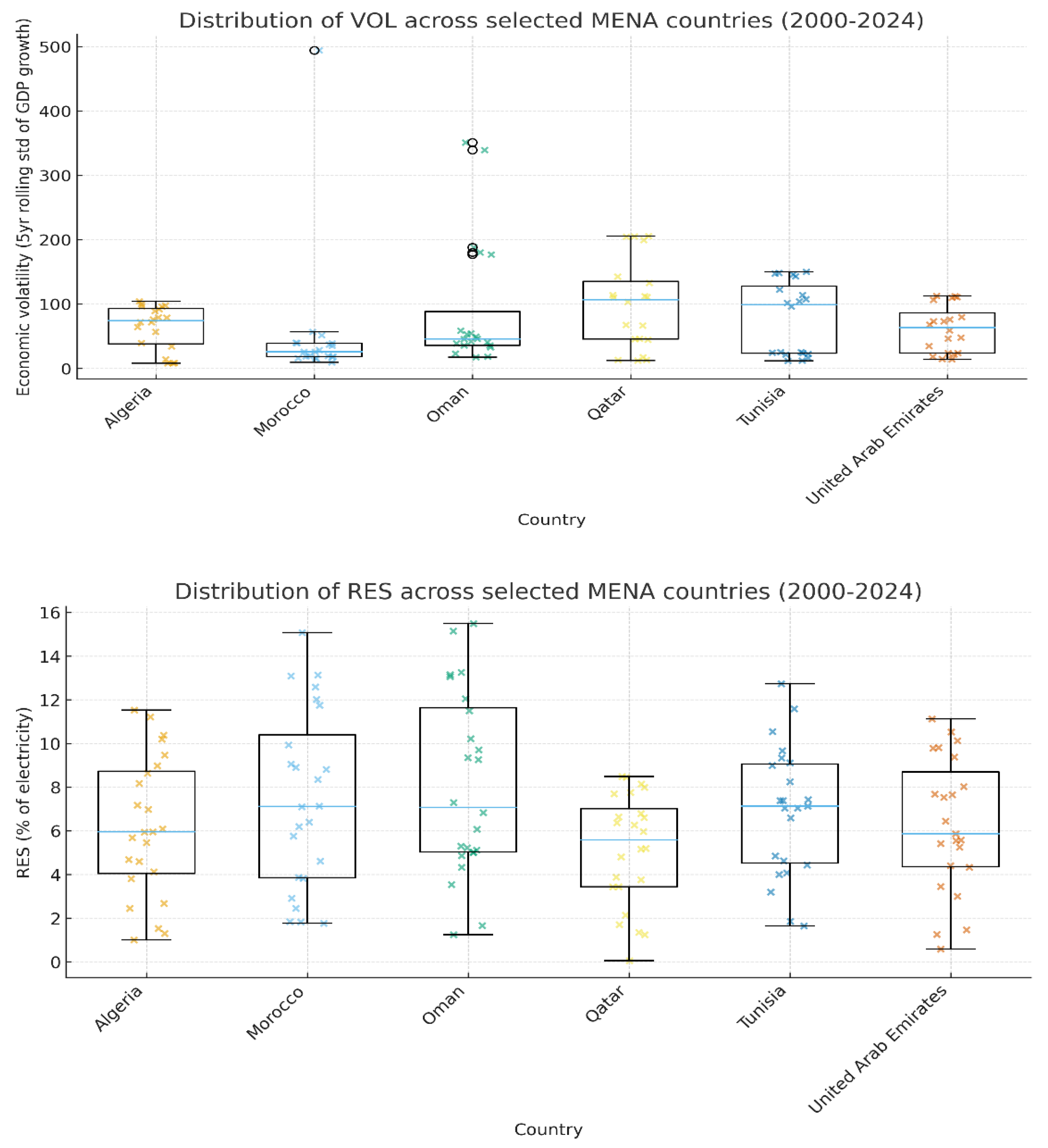 When the focus narrows to the MENA region, the scholarly discourse has been predominantly shaped by the region’s hydrocarbon wealth. A substantial portion of the literature investigates the relationship between oil prices and renewable energy deployment, often yielding complex results. For example,