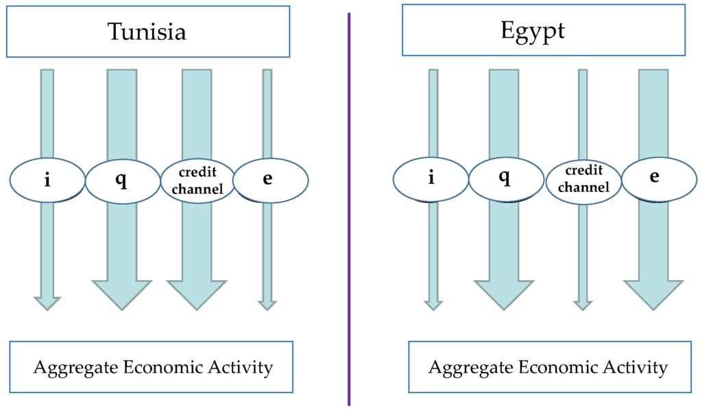 Figure 1. Evolution of the transmission channels of the Tunisian and Egyptian monetary policy.