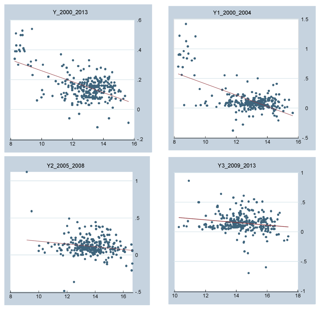 Scatter plots of β-convergence estimation. Source: authors’ calculation.