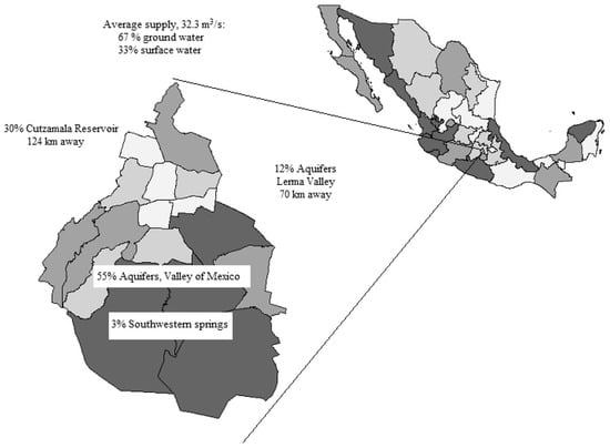 Sources of drinking water in Mexico City. Source: Authors, based on Comisión Nacional del Agua (2012).