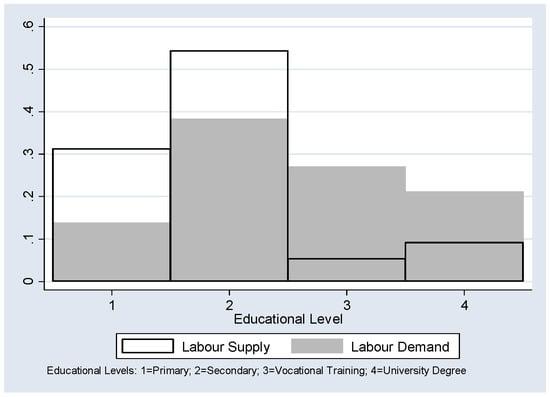 Labour demand and supply differentiated by educational level (percent). Source: ().