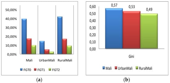 Poverty (panel a) and inequality (panel b) analysis for Mali and the groups. Source: Results obtained by authors with DASP 2.1.