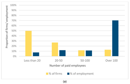 Employment in formal manufacturing firms in India (1990–1997). (a) Formal firm and paid employment shares by firm size (1990–1997); (b) Average employment per formal firm (1990–1997). Source: ASI survey data (1990, 1994, 1995, 1997) As inverse sampling probability-based multipliers have been used to aggregate the raw data, these distributions are representative of the population of formal firms. The measure of labour market flexibility used in Figure 1b is the ‘FLEX 2’ measure due to Hasan et al. (2012) and is described in Section 3.3.