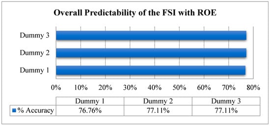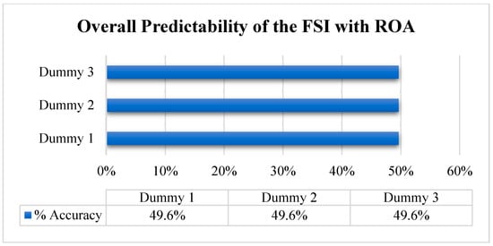 Figure 6 shows the overall classification accuracy of the financial stability index. The overall precision of the financial stability index was 49.6% on the basis of the dummy variables. The cut-off point for this financial stability index was approximately 0.379.
