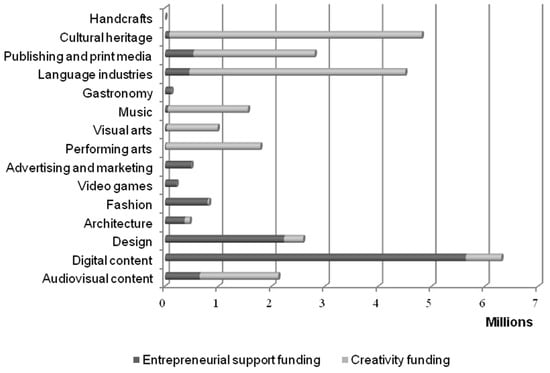 Entrepreneurship and creativity funding received by Basque cultural and creative industries. Source: Compiled by the authors on the basis of Empresa XXI data.