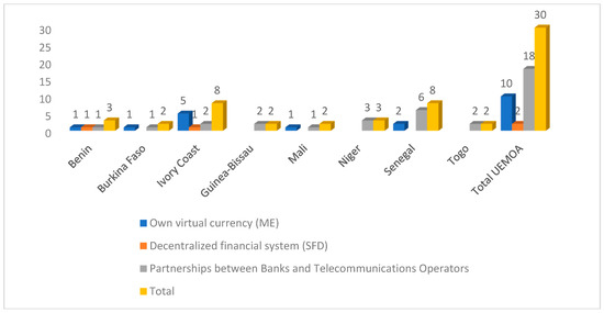 Electronic money establishments in West Africa. Source: Author’s elaboration based on data from (Banque Centrale des Etats de l’Afrique de l’Ouest (BCEAO) 2020) Data (https://www.bceao.int/fr/content/etablissements-de-monnaie-electronique).