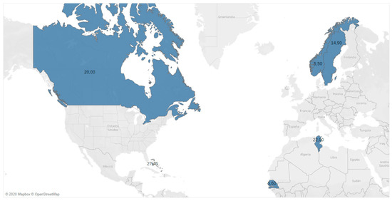 - The World Bank. 2020e. Population Density (People per sq. km of Land Area)—Canada, Norway, Tunisia, Senegal. Available online: https://databank.worldbank.org/reports.aspx?source=2&series=EN.POP.DNST&country=CAN,NOR,TUN,SEN (accessed on 1 March 2020).