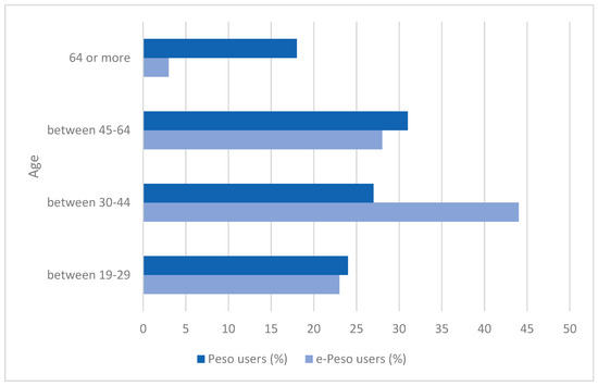 Due to the above, the BCU completed a pilot program with a retail CBDC in April 2018 as part of a broader government financial inclusion program (see Figure 6). The pilot test began in November 2017. An e-weight was issued, circulated and tested. In this way, “Transfers were carried out instantly and as a peer, through mobile phones using text messages or the e-peso application” (Berkmen et al. 2019). However, blockchain was not used. Twenty million electronic pesos were issued, all of which were cancelled when the pilot ended (Wilson 2018). The program is now in an evaluation phase before a decision can be made about additional trials and possible release. At present, the BCU has not yet responded. As important information, we extract the use of digital money versus cash by age range, derived from the test carried out by the BCU.